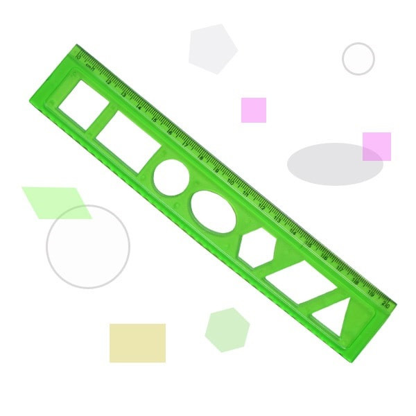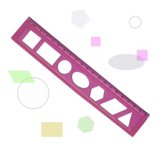 این خط کش در درون خود انواع شکل های هندسی پرکاربرد شامل لوزی، متوازی الاضلاع و سایر موارد را دارد که می توان این اشکال را به سادگی ترسیم نمود!!