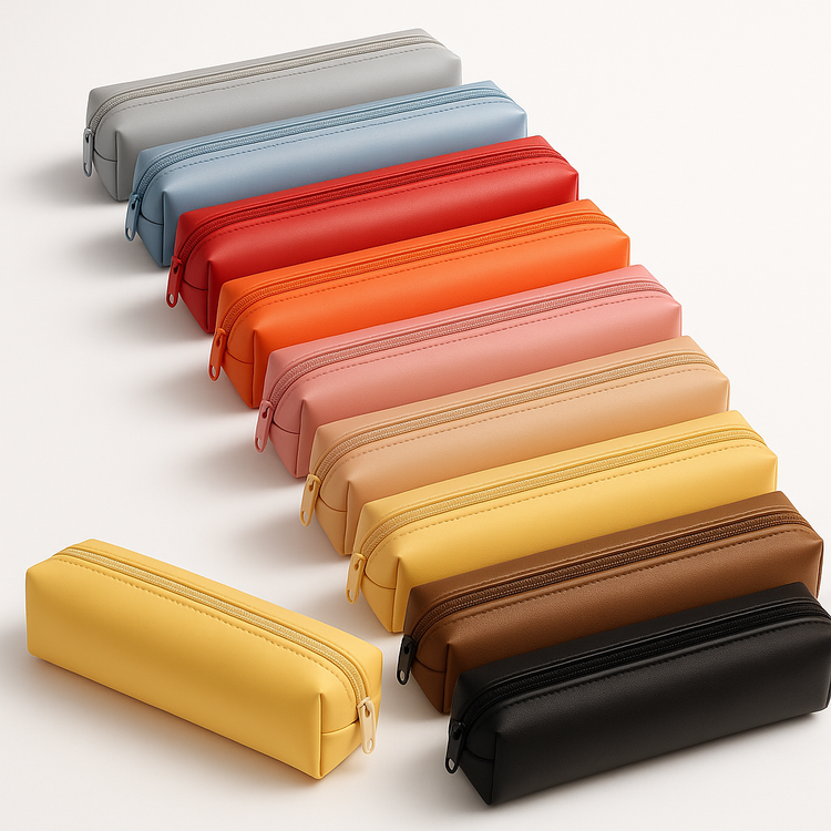 جامدادی تک زیپ (چرم مصنوعی) رنگی ساده بسته 12 عددی